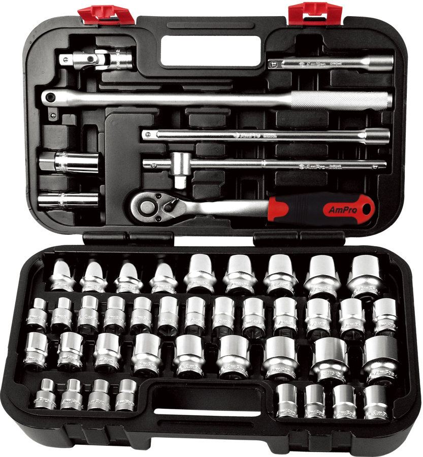Приобрести T45532 Набор головок и аксессуаров 1/2", 47 предметов (дюйм+метрика) в чемодане от компании AmPro (Тайвань) из раздела Наборы инструмента в пластиковых кейсах по цене 8 888 рублей.