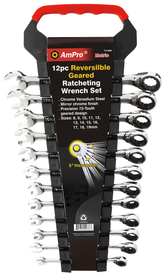 Приобрести T41688 Набор ключей комбинированных с храповиком 8-19мм, 12 предметов на клипсе от компании AmPro (Тайвань) из раздела Наборы ключей по цене 10 011 рублей.