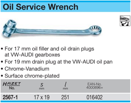 Ключ для обслуживания масленых систем 17х19 HAZET 2567-1 купить в Твери и других городах России