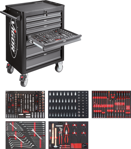 Vigor Тележка инструментальная 7 ящиков с комплектом инструментов 344 предмета.