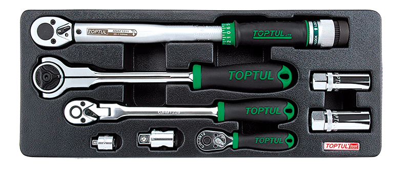 Набор трещоток 1/4", 3/8", 1/2", динамометрический ключ 3/8" 20-110 Нм, переходники и свечные головки, 8 предметов в ложементе (B) TOPTUL купить в Твери и других городах России