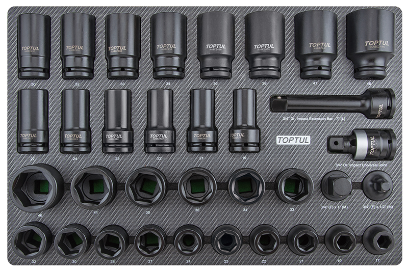 Набор ударных головок 3/4'' 17-46 мм короткие и длинные, 34 пр. в мягком ложементе (D) TOPTUL купить в Твери и других городах России