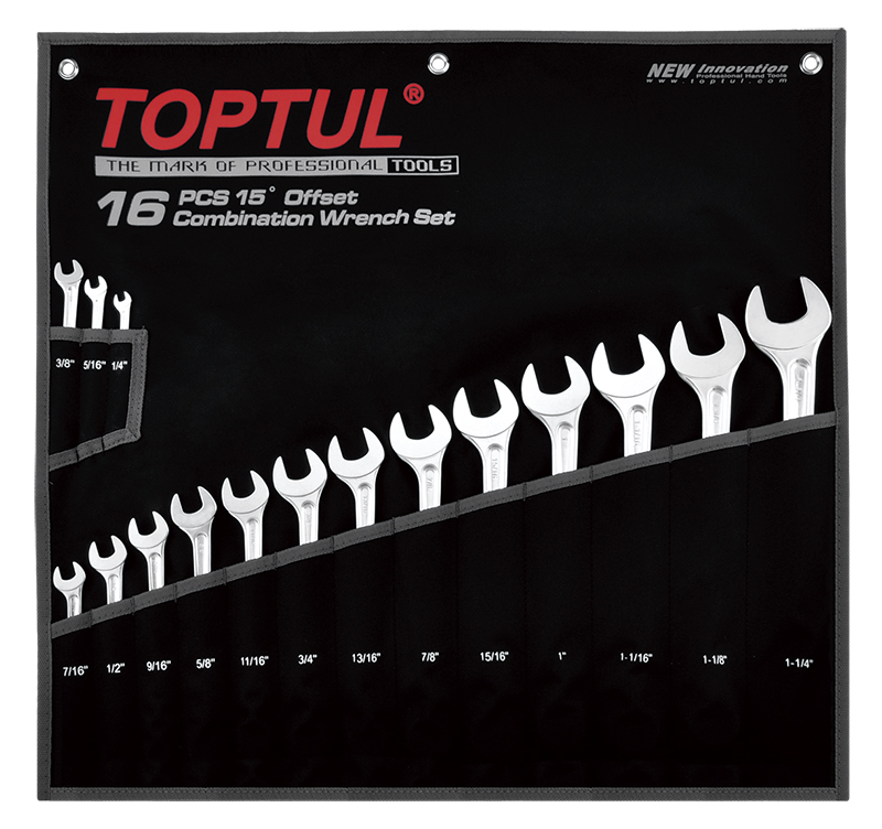 Набор ключей комбинированных дюймовых 1/4"-1-1/4", 16 предметов на полотне TOPTUL GPBX1601 купить в Твери и других городах России
