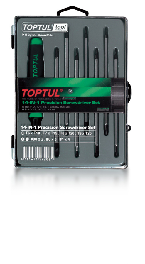 Приобрести Набор отверток для точных работ 14в1 (TORX, PH, SL), 8 предметов в кейсе TOPTUL от компании Toptul (Тайвань) из раздела Наборы отверток по цене 1 524 рублей.