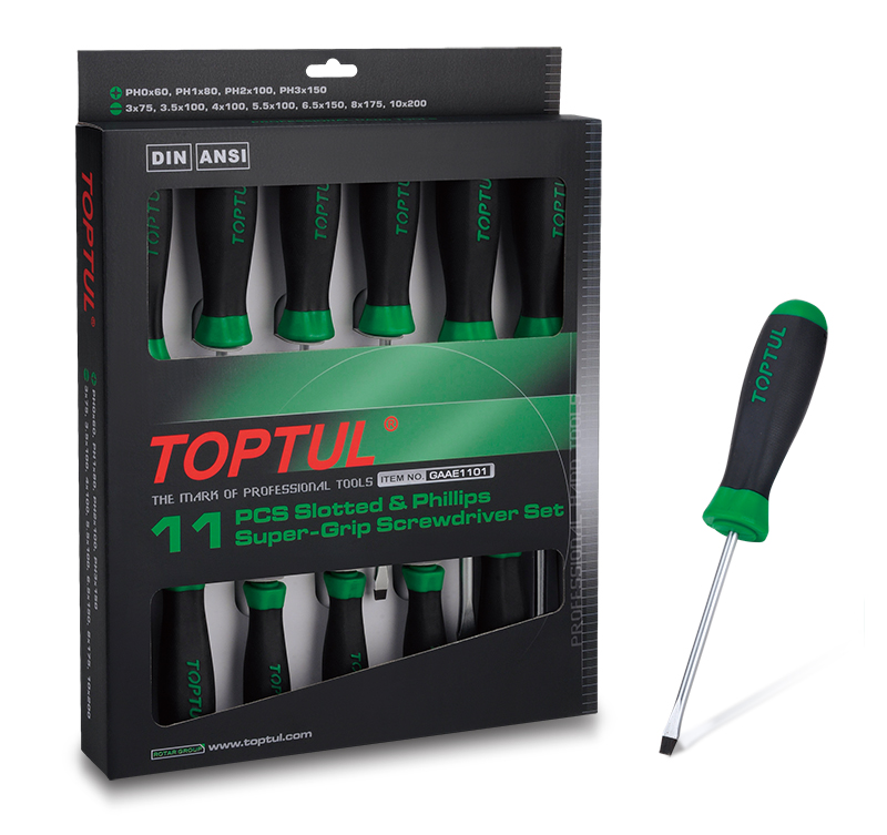 Набор отверток (крест и шлиц) серии Pro, 11 предметов в картоне TOPTUL