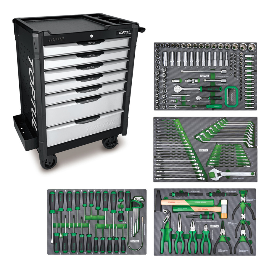 Тележка инструментальная 7 ящиков с набором инструментов 213 предметов TOPTUL GE-21351 купить в Твери и других городах России
