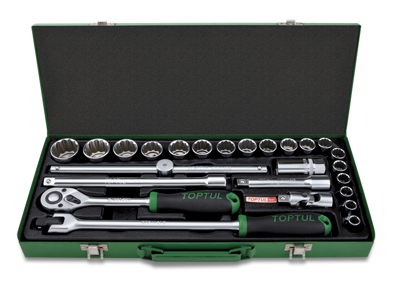 Набор головок и аксессуаров 1/2" 12-гранных 10-32 мм, 25 предметов в метал. кейсе TOPTUL GCAD2512 купить в Твери и других городах России