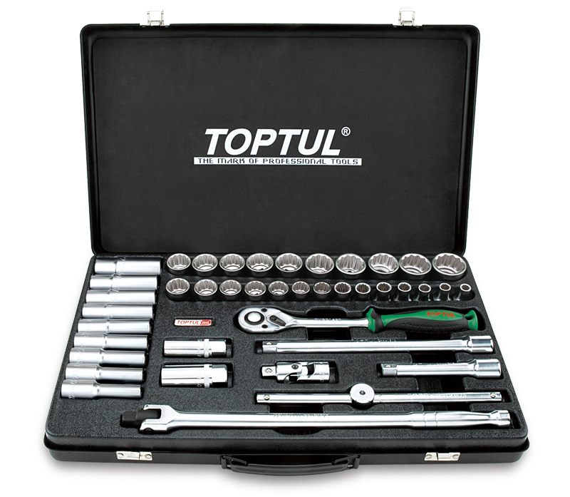 Набор головок и аксессуаров 1/2" 12-гранных 8-32 мм, 41 предмет в метал. кейсе TOPTUL GCAD4103 купить в Твери и других городах России