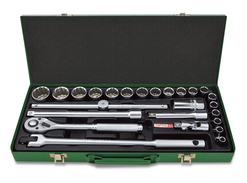 Набор головок и аксессуаров 1/2" 12-гранных 8-32мм, 25 предметов в метал. кейсе TOPTUL GCAD2510 купить в Твери и других городах России