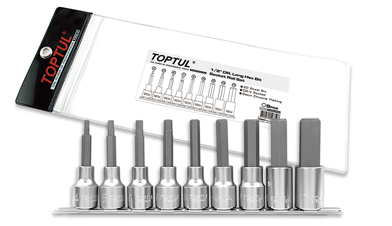 Набор торцевых головок 1/2" с шестигранными вставками 4-17 мм L=80 мм на планке 9 предметов TOPTUL купить в Твери и других городах России