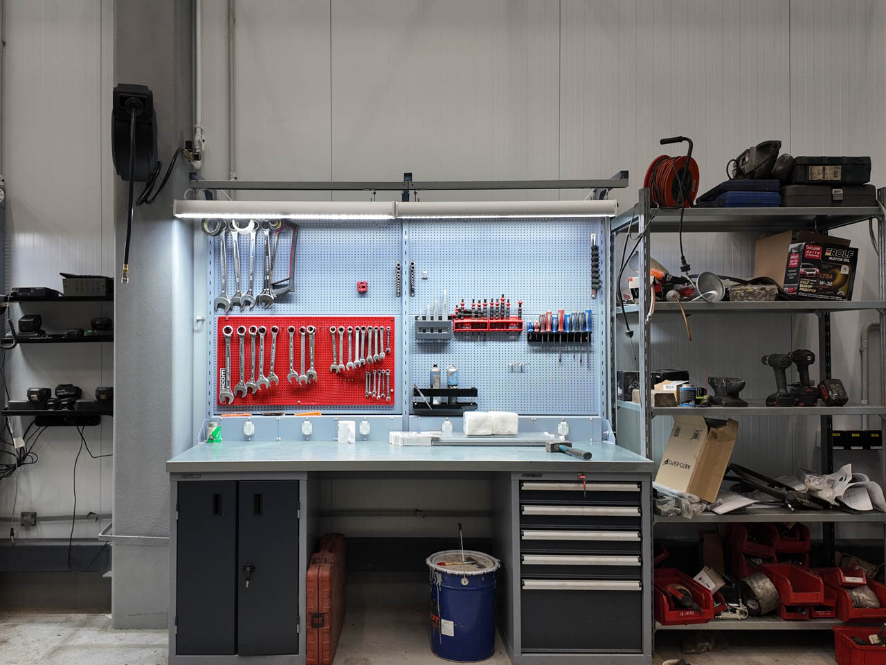 Отдельной задачей стал подбор, расстановка и монтаж стеллажей, шкафов и верстаков в 26 помещениях различного назначения. Это потребовало точного проектирования, учета логистики, эргономики и особенностей эксплуатации каждого помещения.