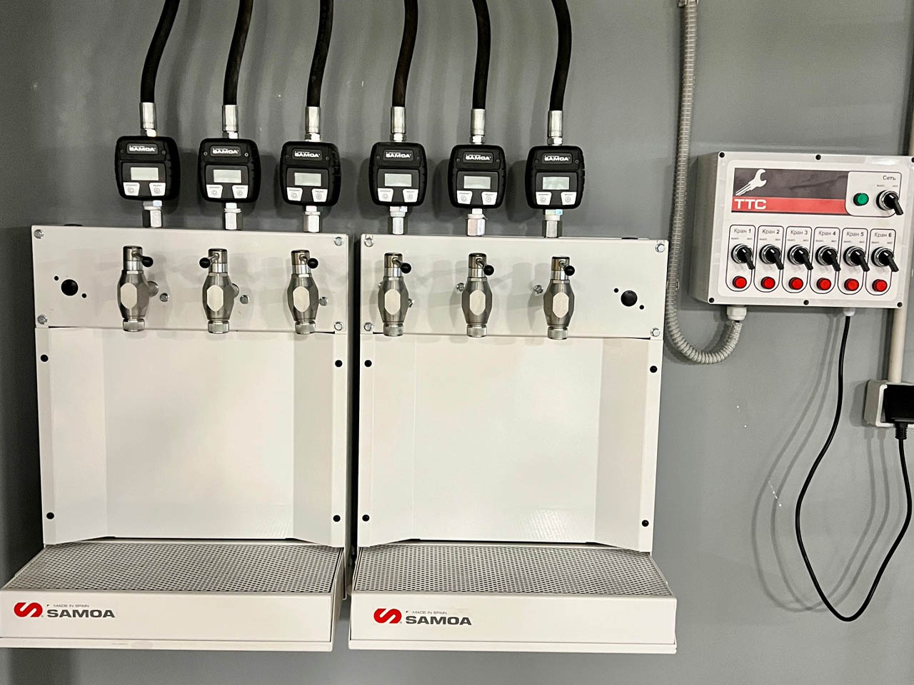 4. Система подачи технических жидкостей: Внедрена комбинированная система выдачи технических сред (масла, антифризы и т.д.), работающая как в автоматическом, так и в ручном режиме. Ключевой особенностью стала полная интеграция оборудования с внутренней системой учета 1С, что позволило автоматизировать списание материалов и учет.